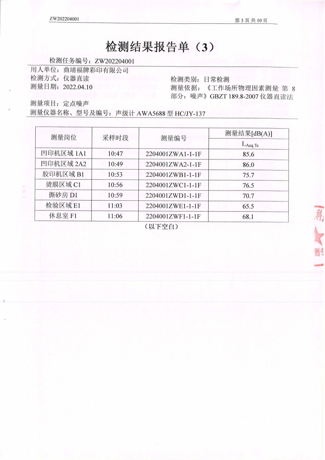 噪聲檢測報(bào)告